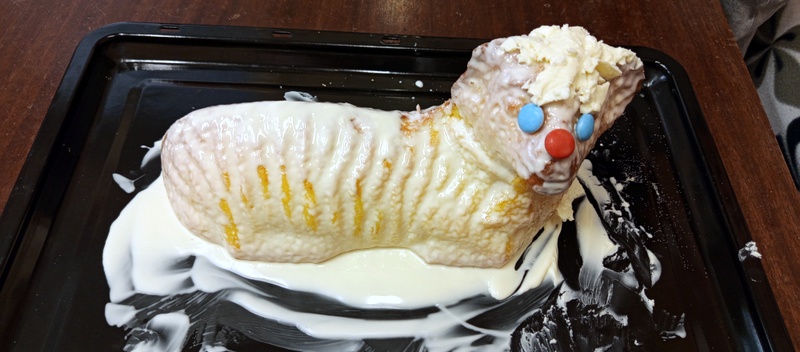 V pondělí 14. dubna jsme se na klubu naladili na velikonoční atmosféru – pekli jsme beránka. Rozdali jsme si úkoly a dali se do práce. Někdo šlehal, jiný vážil, další zdobil. Beránek se nám upekl hezky celý, včetně nosu, se kterým míváme věčně problém. Po vychladnutí ho jedna šikovná slečna nazdobila polevou z bílé čokolády a z lentilek udělala oči a nos. Beránek se nám letos moc povedl, i když jsme měli míň pomocníků.